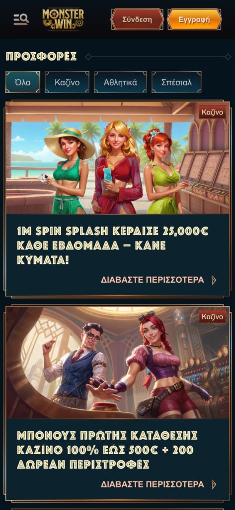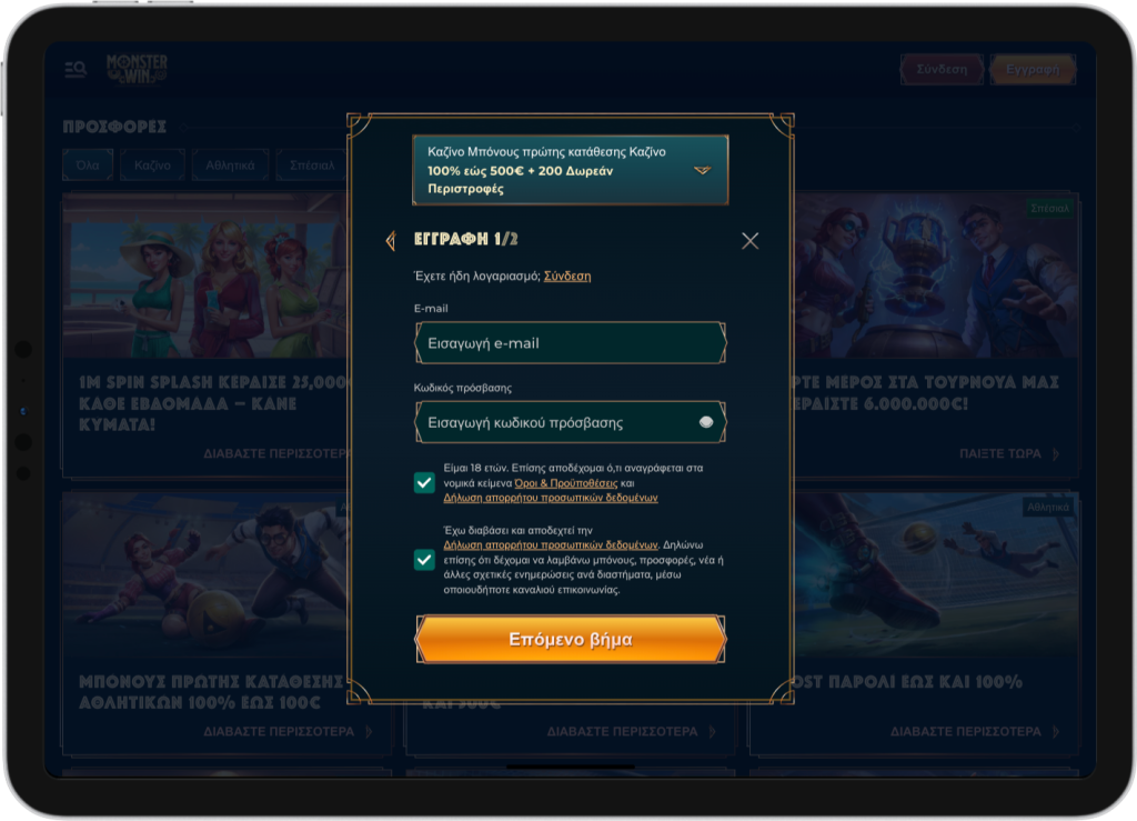 Εγγραφή και σύνδεση στην εφαρμογή Monster Win App